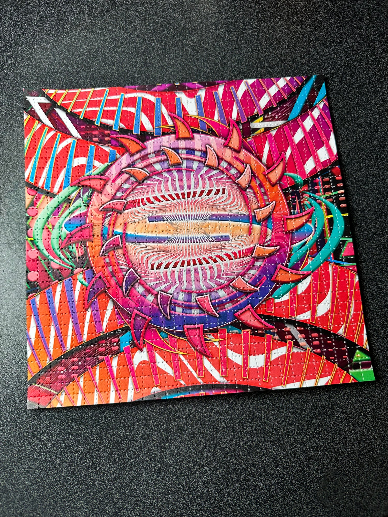 Add a pop of color and energy to your living space with this stunning abstract art print on blotter paper. Blotter art is a collectors item and has never been in contact with any illegal substances. 100% safe to handle and admire! This work stands as a tribute to the 80th anniversary of Albert Hofmann's groundbreaking synthesis of LSD in 1938.
